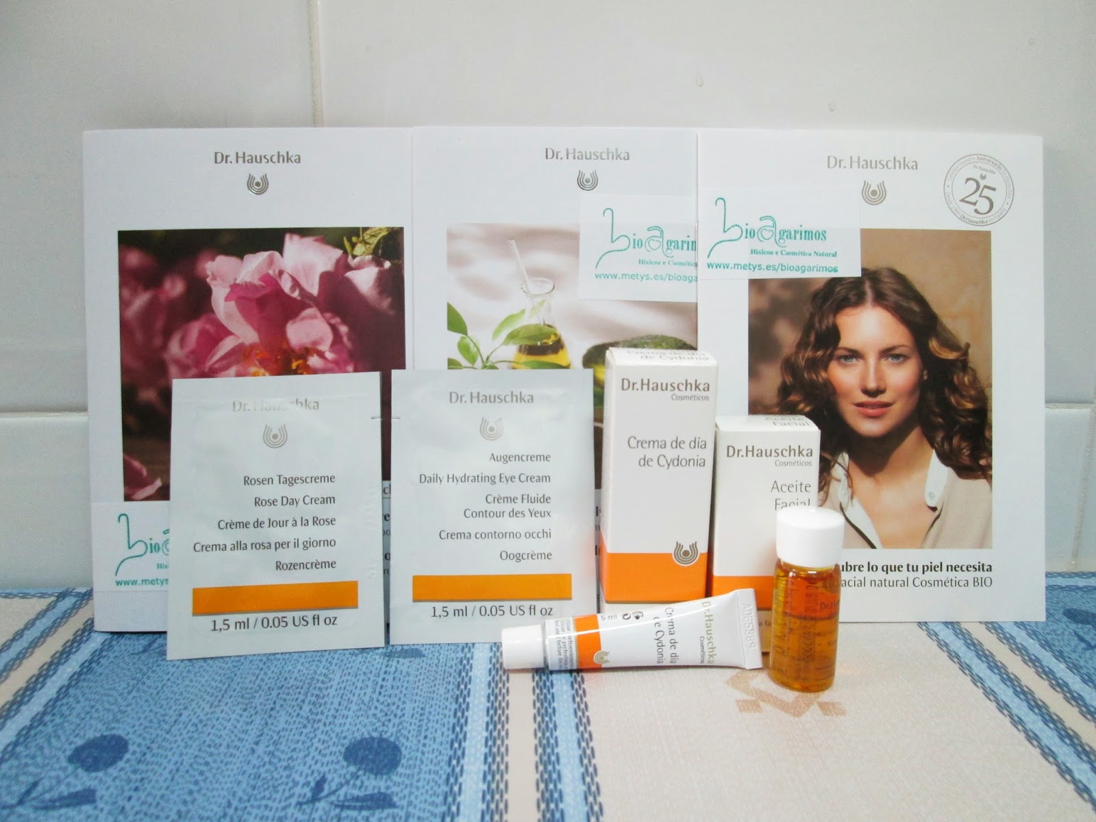 - He probado dos muestrecitas: una crema facial de rosas y una crema para el contorno de ojos. La que más me ha gustado, ha sido esta última. La crema facial es para pieles secas con tendencia a rojeces, y yo al tener la piel grastia, la he probado solo en la zona de las mejillas, cerca de la nariz, que es donde más sensible tengo, y la verdad, que muy bien, aunque la noto demasiado hidratante. El contorno de ojos, en cambio, me ha encantado. Es muy ligerto, huele muy bien, como un aroma floral. Pero especialmente, porque hidrata la zona y deja una sensación de frescor muy agradable.