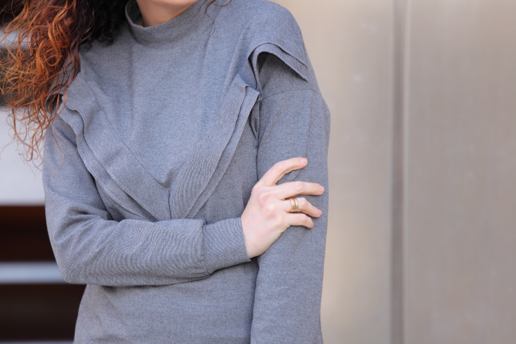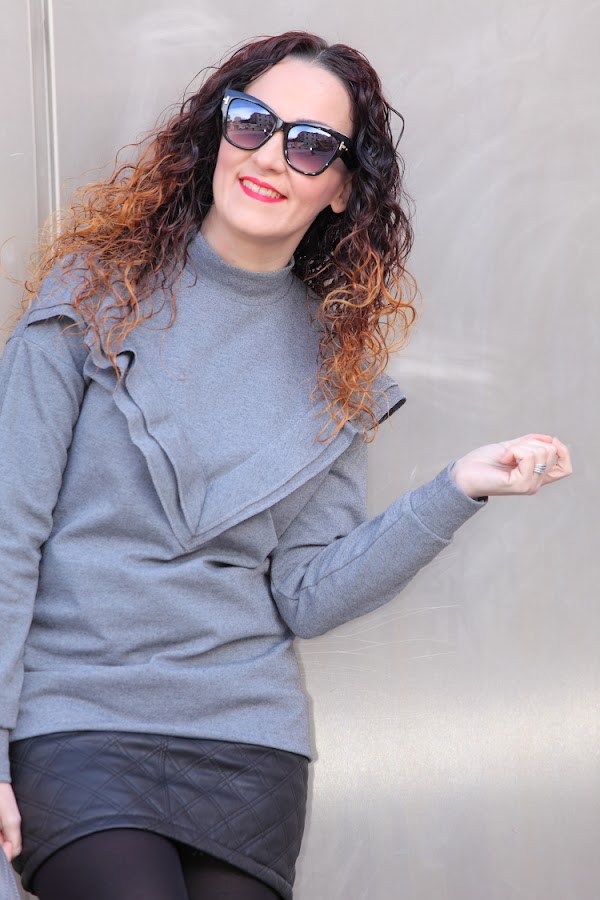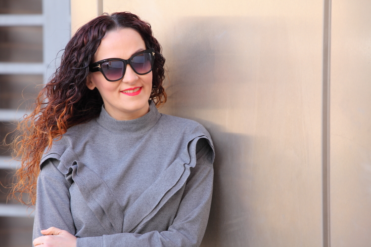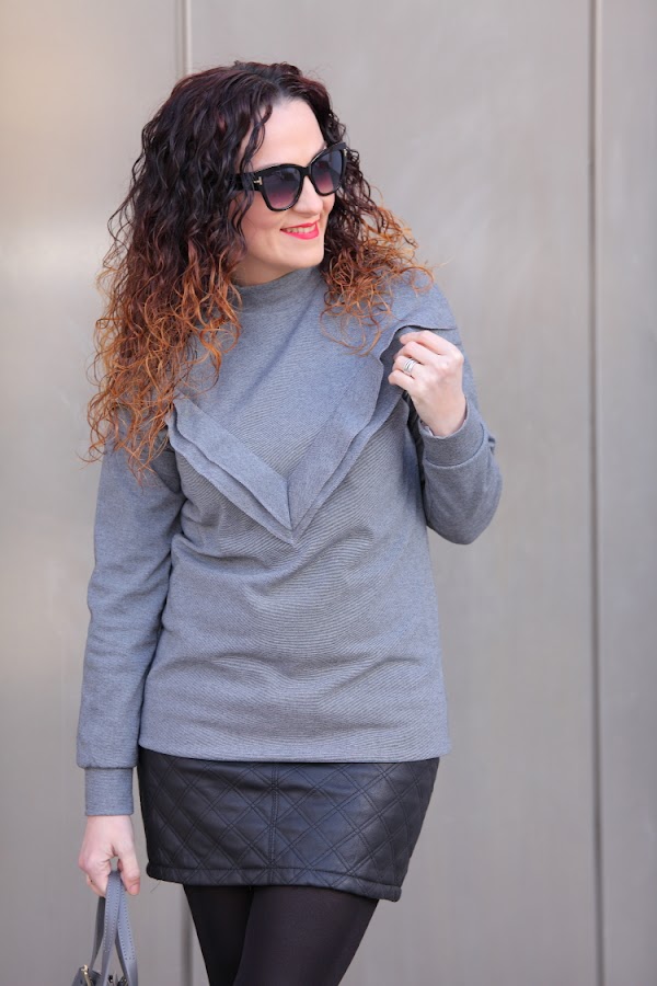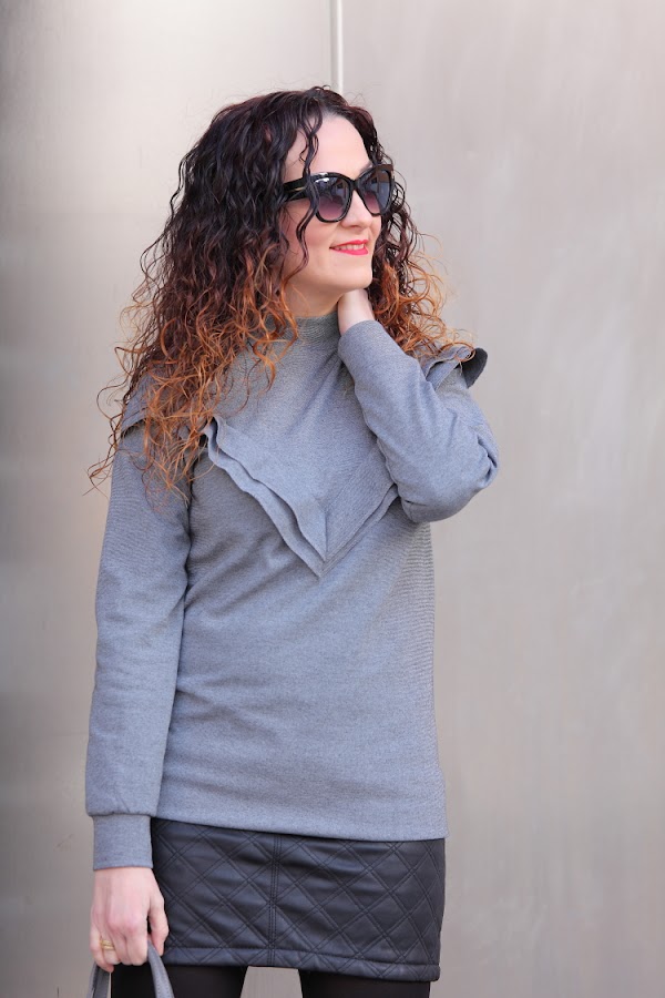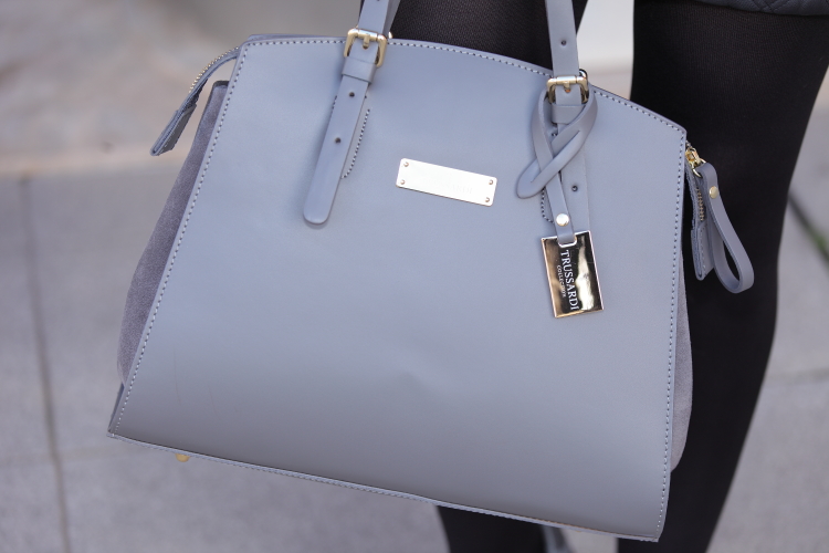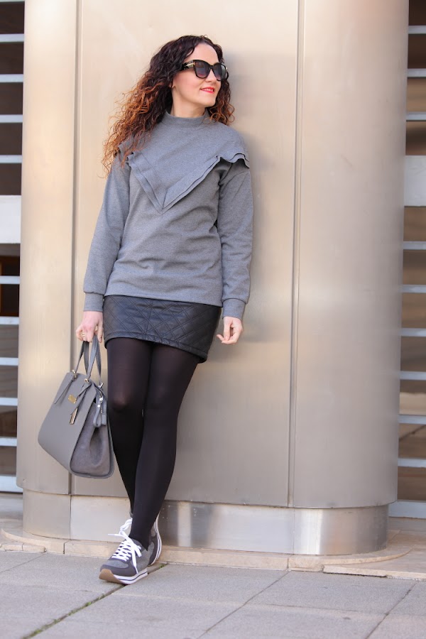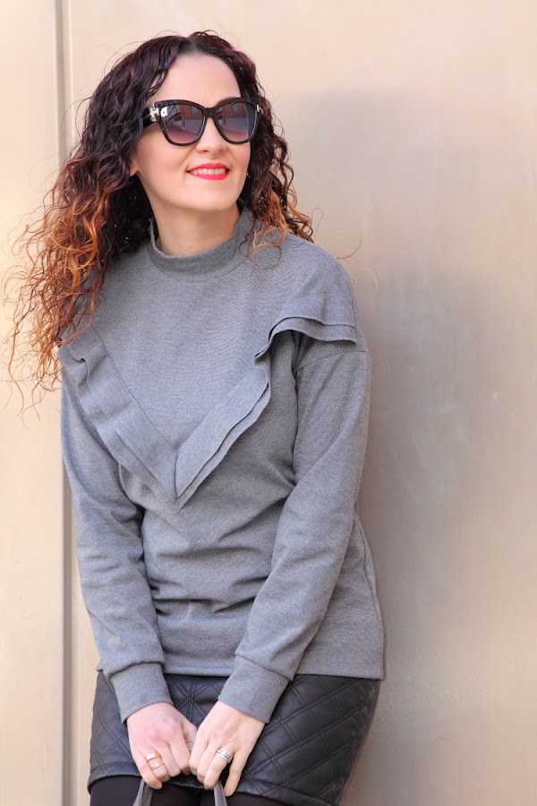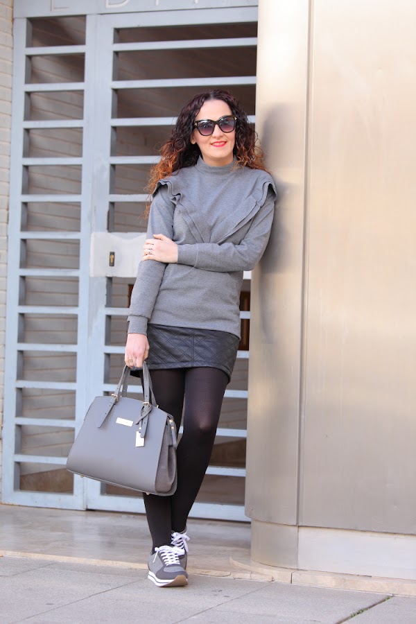 El gris es un color que a la hora de vestir no suele gustarme demasiado. Por eso, como ya os habréis fijado, tan apenas lo utilizo, pero siempre aparecen prendas especiales que aunque sean grises te gustan tanto que acabas comprándolas. Esto mismo es lo que me pasó con el jersey con volante y las zapatillas que llevo hoy. Aunque reconozco que lo que más me gusta es mi nuevo bolso de Trussardi que aunque ya hace más de dos de meses que lo tengo todavía no había aparecido por aquí.