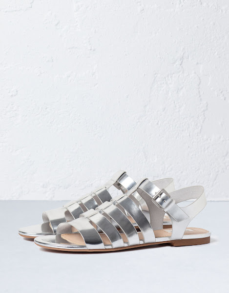 Me encanta la idea de utilizar sandalias bajas pero con un toque chic, estas plateadas son bellas, no sé si son de alguna firma, pero yo vi estas en la pagina de Berska en los descuentos: