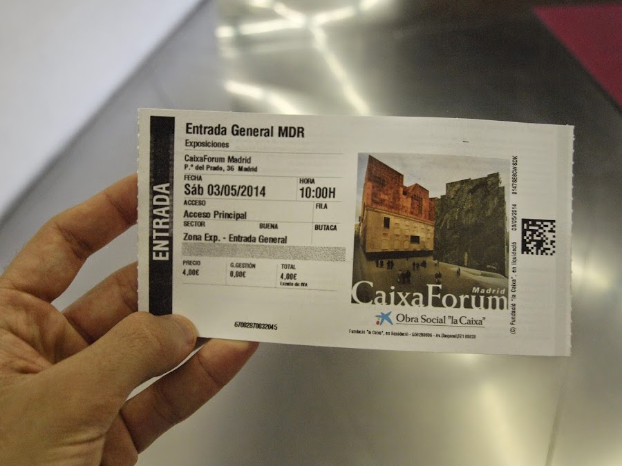 ¡Con mi entrada en la mano!, que tengo que decir que para los que somos clientes de La Caixa la entrada es totalmente gratuita, pero para los que no, el precio de la entrada es de 4 Euros. ¡Merece la pena pagarlos!.