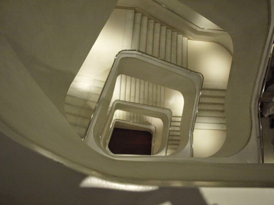 Entro a un pasillo con varios ascensores, pero me reto a mi mismo para subir en escaleras, preparado mentalmente porque me encontraba en la planta 0, y tenia que subir a la 3ª, pero me daba igual, me estaba sorprendiendo tanto el edificio, que sabia que algo me esperaba en la escaleras; y así fue, una gran foto, (lo que te digo, todo un mosaico);