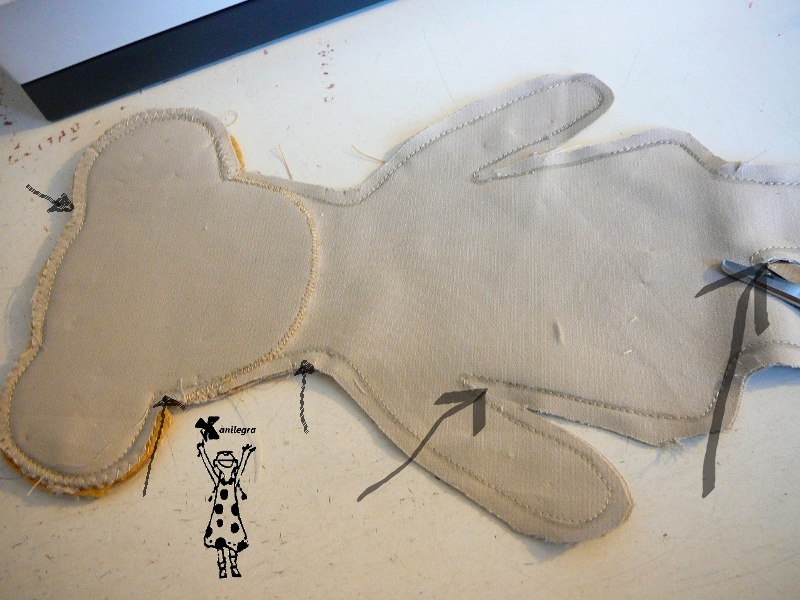 Dejamos un trocito de unos cuatro centímetros ,sin coser en uno de los laterales del cuerpo,