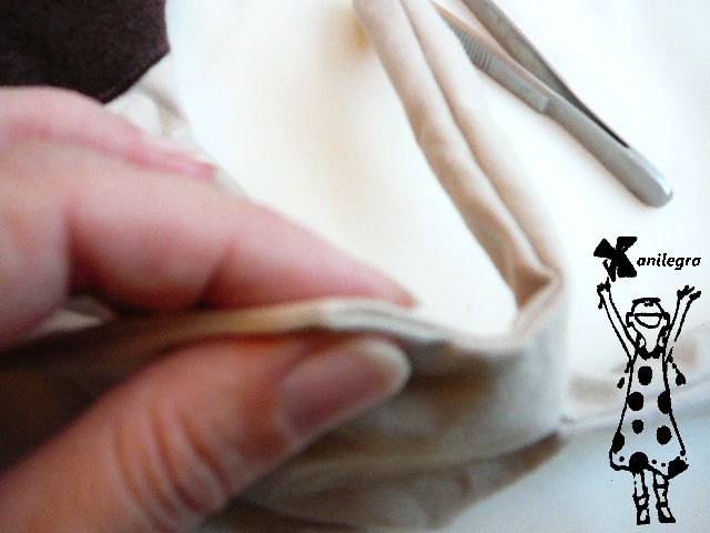 llegando prácticamente a la línea de costura Para los que no tenéis mucha costumbre de coser ,u os da miedo cortar tan a fondo hay un pequeño truco que expliqué es¡en las intrucciones de costura de otra muñeca que publiqué aquí