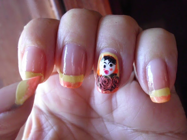 ¡Hola! Entre la Cajita de Diana y yo teníamos un reto, estamos haciendonos ciertas manicuras los martes. Hoy tocan las Matrioska, muñecas rusas. Hasta ahora hemos versionado alguna foto pero hoy ha sido muñecas rusas, sin foto, libre. Esta es la mía.