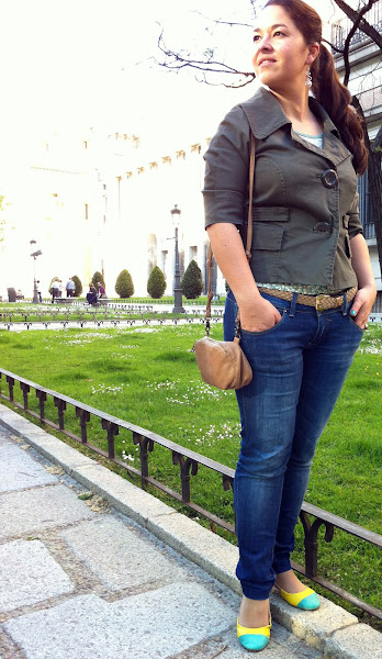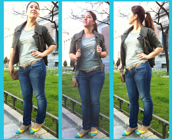 Por si a última hora refresca, he decidido llevar una chaqueta que compré hace muchísimo tiempo, pero que se conserva como el primer día. Ni siquiera recuerdo dónde la adquirí, pero tengo claro que fue una gran elección, porque ese color verde militar nunca pasa de moda y sienta fenomenal.