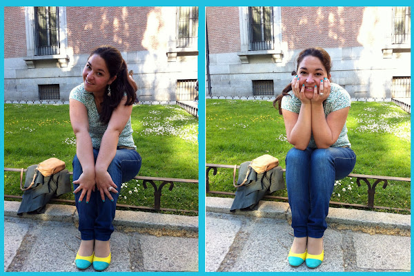 Para estos menesteres, por supuesto, un look extra cómodo: vaqueros (Bershka), camiseta (miracle), y por supuesto... ¡bailarinas! (Mulaya)