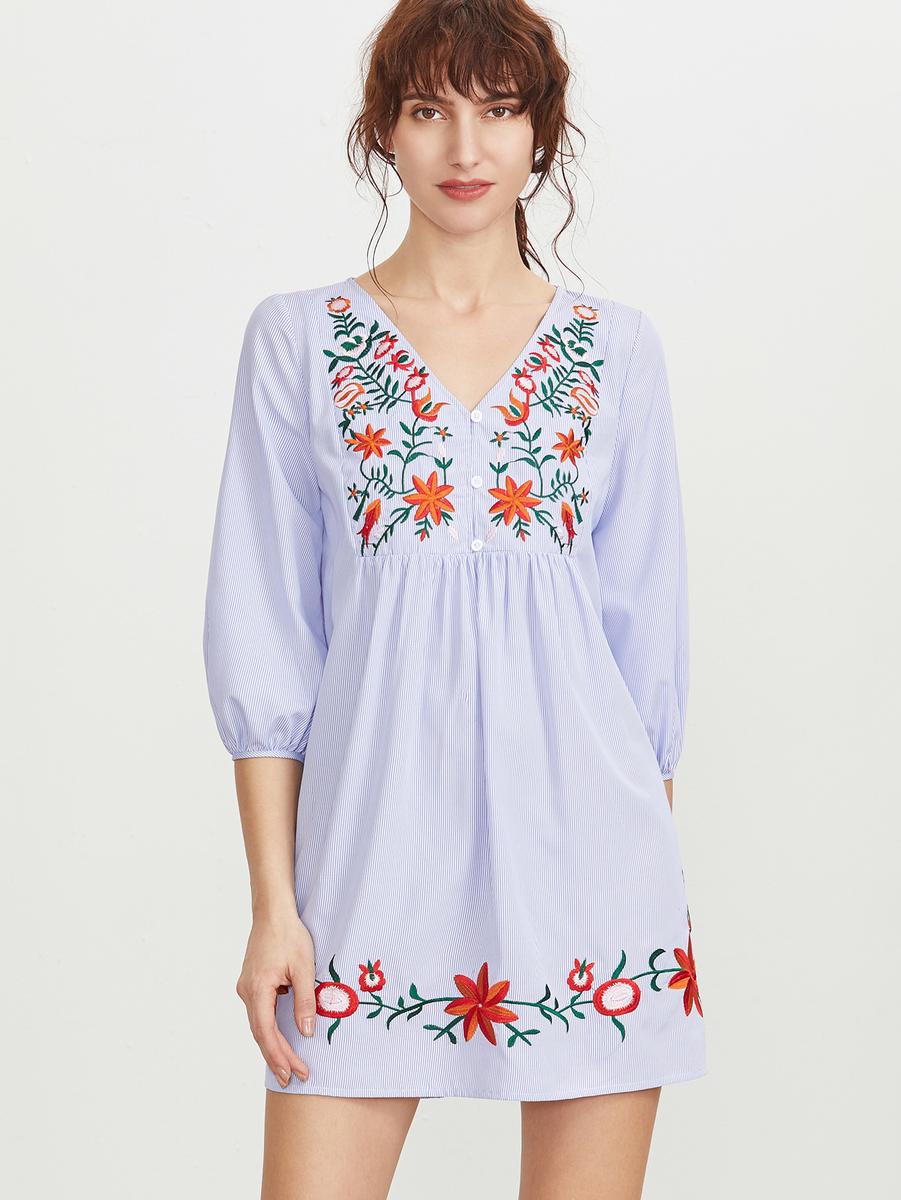 vestido a rayas bordado (aquí)