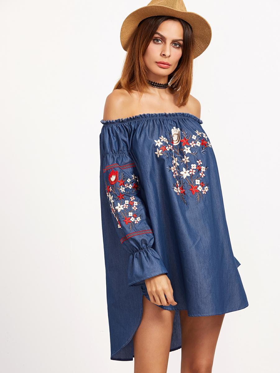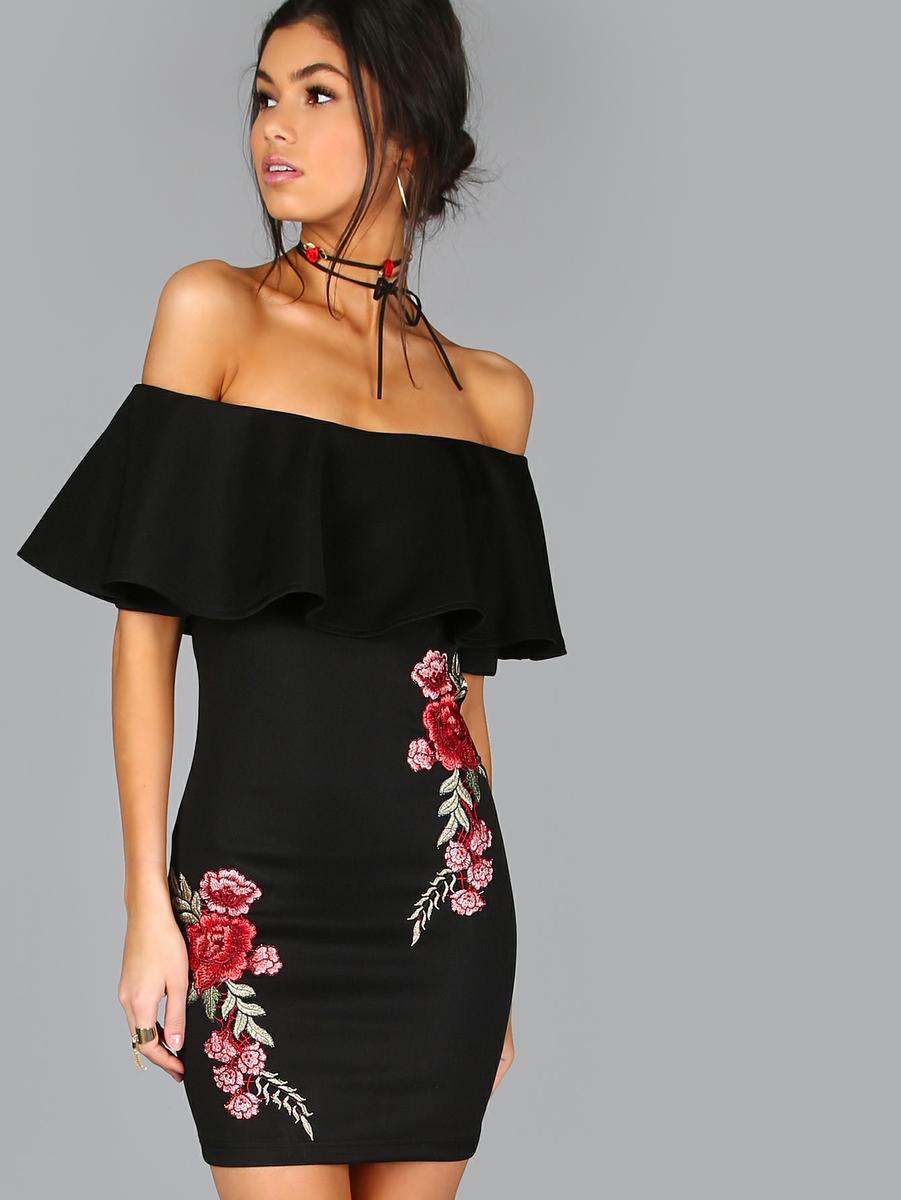 vestido volante y bordado floral ( aquí)