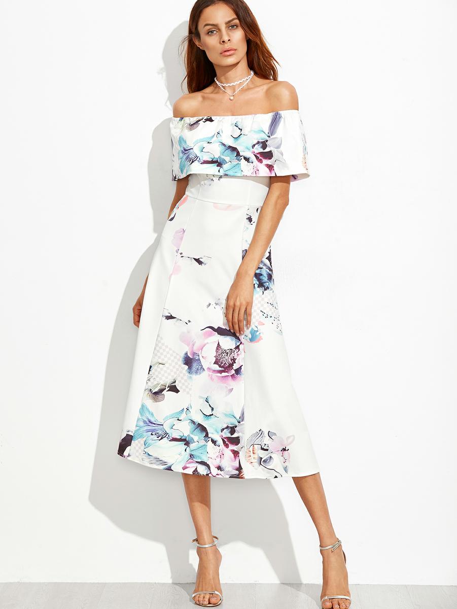 vestido midi hombros al aire (aquí)