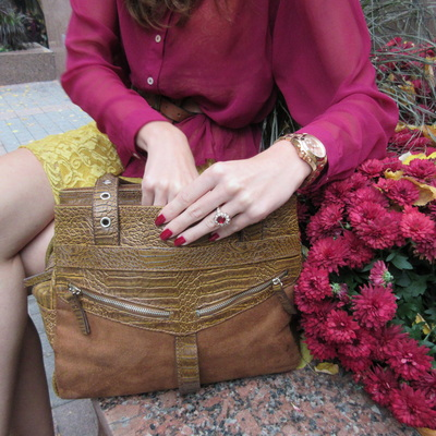 El Mostaza es uno de los colores populares de esta temporada,podemos combinarlo con verde Esmeralda, azul Índigo, Teal,Burdeos, azul marino... o con colores neutros como el gris,negro,beige... En esta ocasión yo elegí la combinacion de mustard + cranberry.