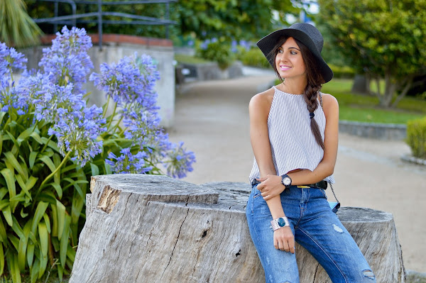 Pantalones y top: Zara/ Bolso: Mangooutlet / Sandalias: Stradivarius / Sombrero: Forever21 / Brazalete: Parfois