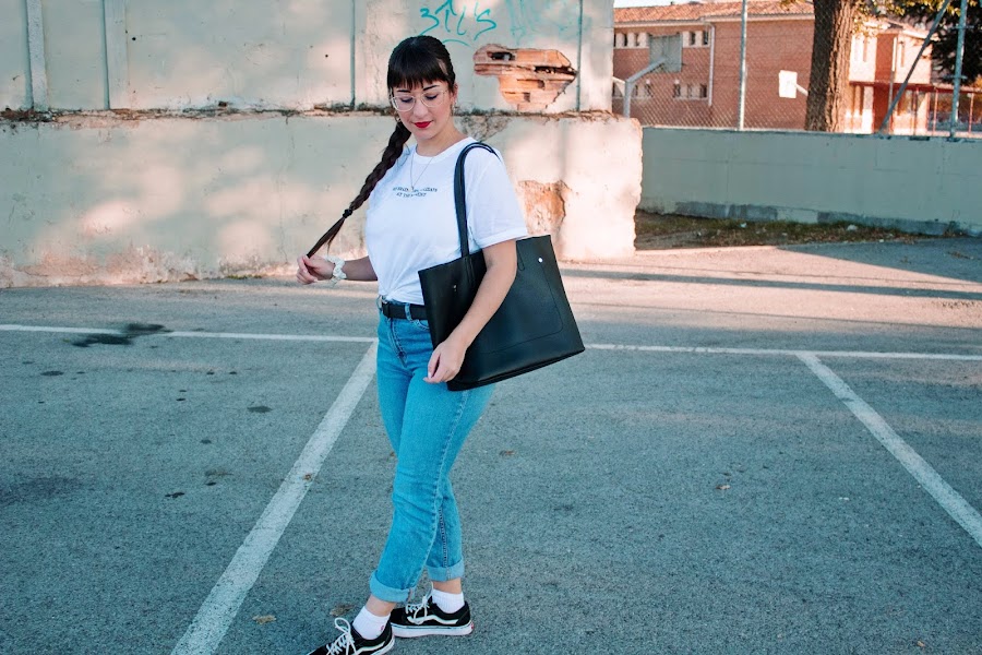 Las fotos que os enseño hoy me gustan mucho, además creo que el outfit es muy práctico para ir a clase, a trabajar o simplemente para ir cómoda. Muestra de esto lo veis en el bolso estilo "shopper bag" y en mis nuevas gafas, las cuales me encantan.