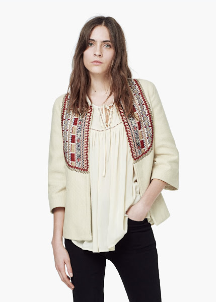O estas chaquetas de Mango: una biker y otra bordada. Por no hablar del abrigo rosa palo, mi favorito de esta temporada y también de los señores de Pantone.