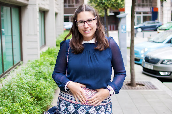 Aunque ya hayamos entrado en junio, por el norte no lo parece... El sol sigue sin aparecer y las chaquetas, todo lo que tenga manga larga e incluso las medias (¡sí, las medias!) siguen siendo claros protagonistas de nuestros looks diarios. ¡A ver quién es el valiente que se atreve a poner sandalias! Aunque bueno, aquí ya lo sabemos de sobra: el tiempo puede dar un giro inesperado de un día para otro y corriendo a cambiar al armario de verano. Como yo todavía sigo a la espera, os enseño otro outfit de entretiempo donde todo gira alrededor de esta falda étnica tan requete bonita. Vino conmigo del Mediterráneo, allá por agosto del año pasado, y todavía no había tenido la oportunidad de tener un huequito aquí. Aposté por el azul y la combiné con mi blusa con cuello bebé que nunca pasa de moda y complementos también en la misma tonalidad. Espero que os guste y feliz semana