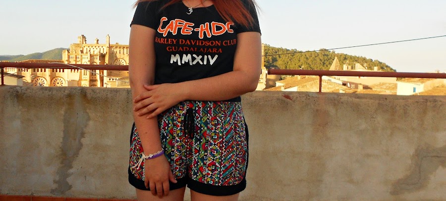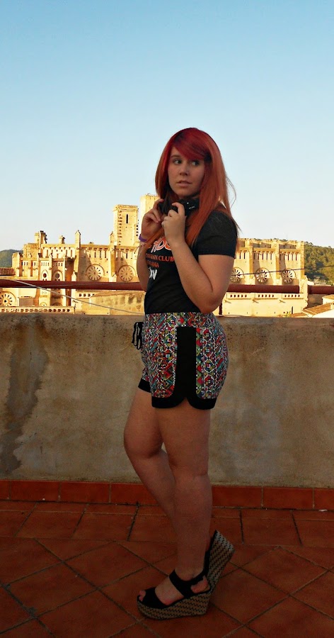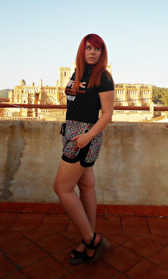 Las fotos son de un Domingo relajadito en casa, con los shorts nuevos de Springfield de mi hermana y la camiseta de la concentración en Guadalajara de HDC. Las plataformas también se las he quitado a ella pero ¡Son tan bonitas! No me he podido resistir, aunque me están un poquito grandes...