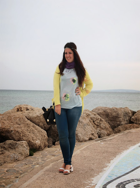 Hi everybody! One of the thing I love is to walk by the sea with my boyfriend and mi dog, the princess of my home! Today Today is undoubtedly the star of the pictures, you don"t believe? Of course, to wear comfortable walking floor looks, I low heels and I wear jeans, essential garment in my closet. To give a different touch I weared a ribbon with feathers, I like getting hair accessories. I hope you like the photos as much as me!