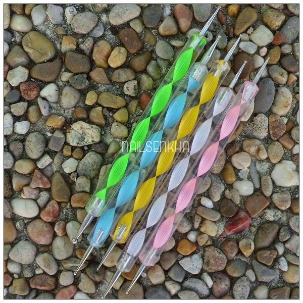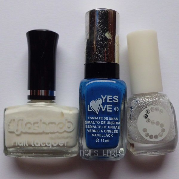 *En las uñas del medio en una hacemos puntos y en la otra aplicamos un glitter como los puntos iban en blanco yo escogí un glitter en blanco también para que hicieran juego y esperamos a que sequen.
