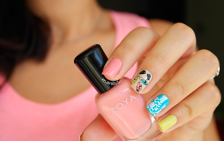 Debido a que la manicura iba a combinar muchos colores bastante diferentes entre sí, quise que el diseño fuera relativamente sencillo. Hace unos meses me llegó un pack de placas de estampación, aún no sé de quién. Sí, como lo leéis: tengo un admirador secreto.