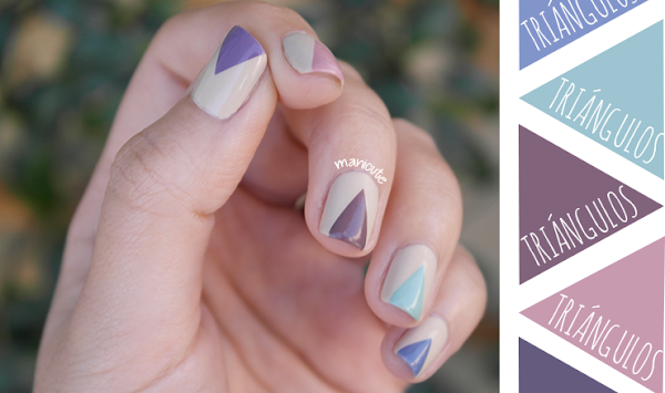 Hoy os traigo un nail art inspirado por PolishHound, se trata de unos triángulos en colores neutros sobre base nude... ¡Una cucada muy fácil de hacer! ¿Lo vemos?