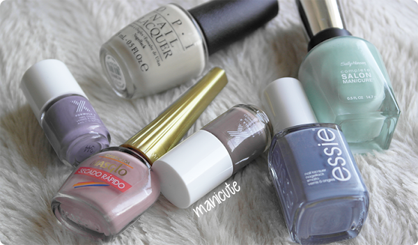En este caso, se trata de colores poco saturados, en todo caso tienen un puntito de gris que los hace relativamente discretos y adecuados para llevar entre diario. Abajo os dejo una foto de los protagonistas ^_^