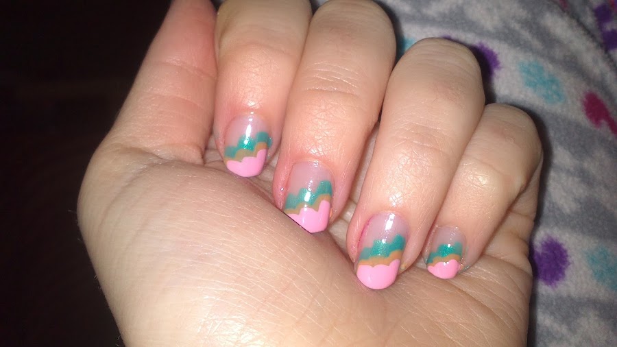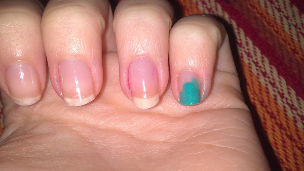 Después de usar una base vitaminada (siempre lo recomiendo para el cuidado de la uña), hacemos tres escalones de un color como en la siguiente imagen: