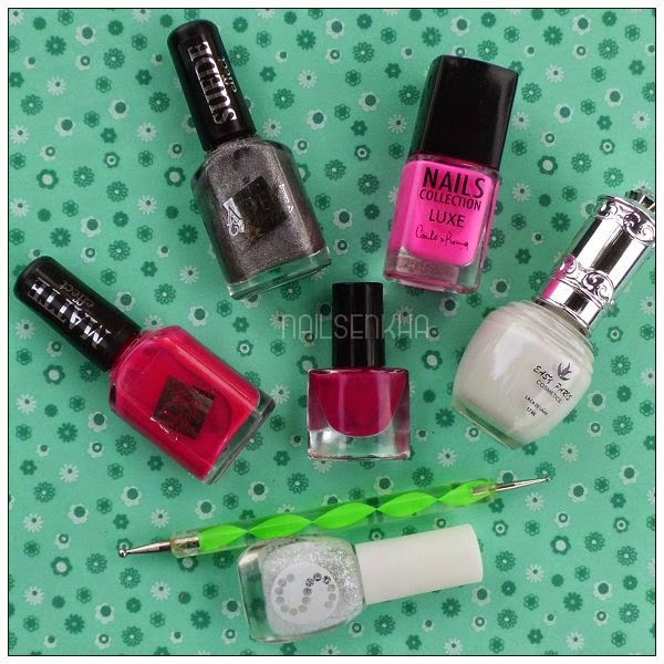 *Yo he pintado todas las uñas con el color frambuesa de The Color Workshop excepto una que la he pintado en blanco