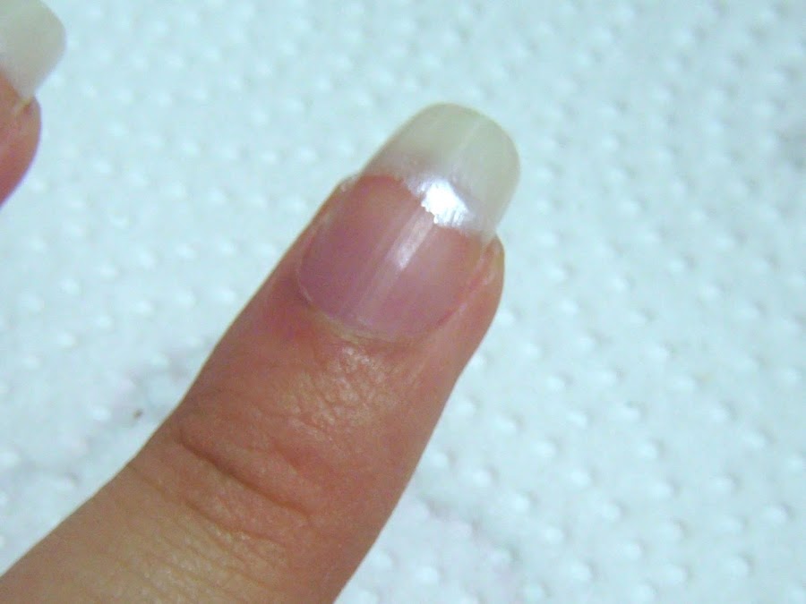 1. Como primer paso vamos a pintar la punta de las uñas con un esmalte blanco aperladito aunque no quede completamente perfecto es importante por ahora que nos quede bien cubierta punta de la uña. Pasamos más de una capa si es necesario.