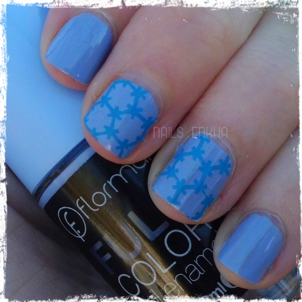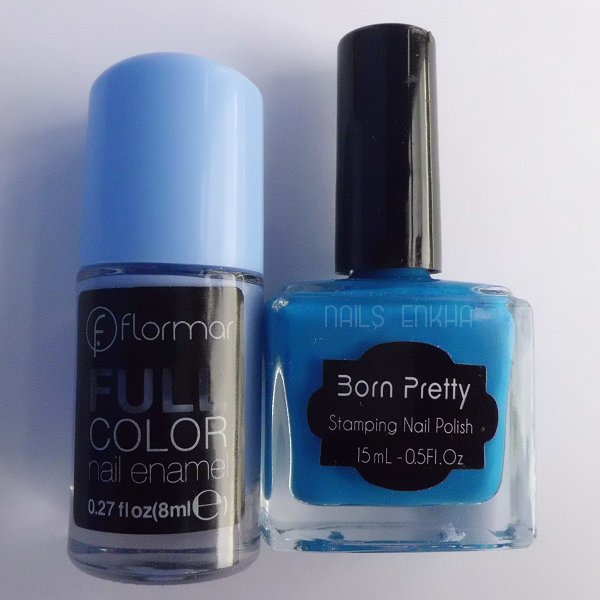Aplicamos una capa base, pintamos las uñas con el color que hayamos escogido, en mi caso fue este azul de Flormar que seca muy bien y así no tenía que esperar mucho tiempo y a continuación estampamos el diseño que hayamos escogido y esperamos un tiempo para aplicar el top coat y no corre el riesgo que se nos corra la estampación y se nos eche a perder nuestra manicura.