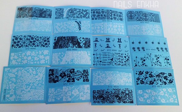 Este artículo se compone de un pack de 48pcs de water decals con infinidad de motivos, yo en concreto he usado el de Marilyn Monroe pero tenéis de encaje, de estrellas, huellas, flores, corazones, mariposas, pájaros, patos, de amor, etc. Os dejo unas imágenes y así veis mejor los diseños.