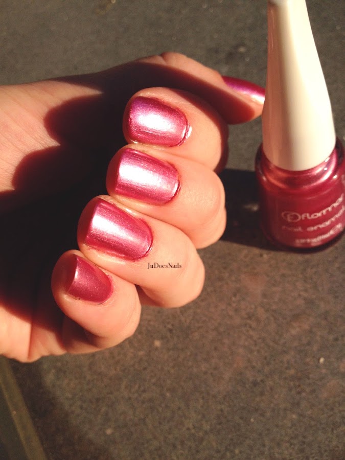 Primero de todo he pintado las uñas de un rosa irisado de Flormar llamado Fuchsia Flower (360) que cubre perfectamente con una capa de esmalte, es un color bastante bonito y, aunque a simple vista en el bote de la laca parece el típico color de abuela, en las uñas queda sorprendentemente bien!