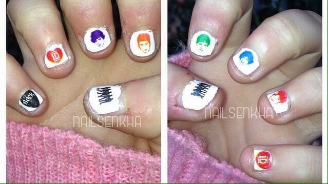 Os traigo un diseño en las uñas de mi prima con los tatoos de One Directión, siento mucho si no están perfectas pero no deja que si te sales se lo limpies, no para quieta y no siempre nos sale todo centrado. Vamos que la niña es un Kaos jajajaja.
