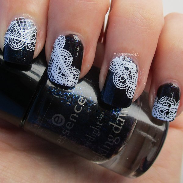 Yo para esta manicura me decante por uno de los diseños que tiene ondulaciones y que no es entero para así poder ponerlo en distintas posiciones en la uña, estampe en banco porque es el color que más me gusta para estampar ya que va con todos los colores y además me pareció el más elegante para estampar con un diseño de encaje.
