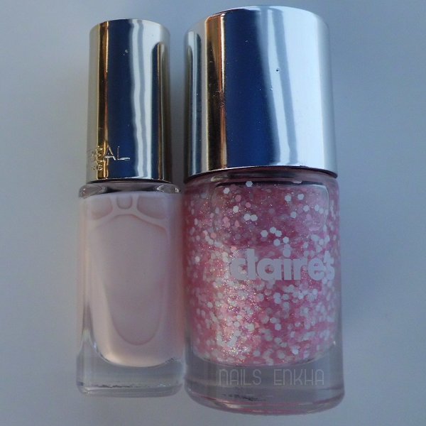 *Aplicamos una cape base y esperamos a que este bien seca, a continuación pintamos las uñas con nuestro esmalte y yo por lo menos casi siempre doy dos capas y cuando este seco aplicamos el glitter si os parece muy recargado en todas las uñas siempre podéis aplicarlo en una o dos uñas solamente.