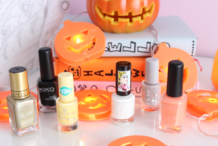 Este año pensé que no iba a haber ningún diseño de uñas especial Halloween, porque la fecha se acercaba y no tenía nada pensado, pero un día se me ocurrió que podía hacer algo con colores más claritos para esta fecha sin recurrir a los colores de siempre o los que son más típicos.