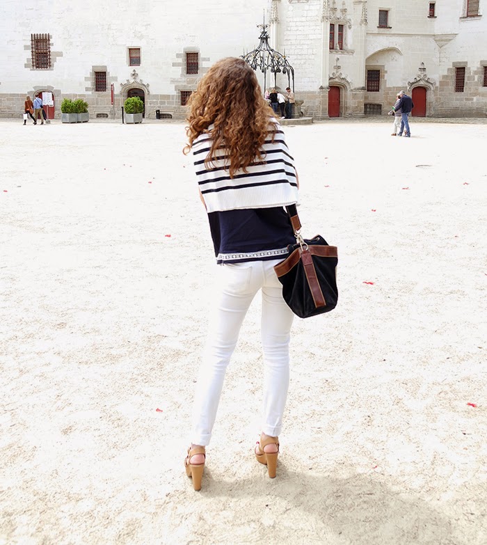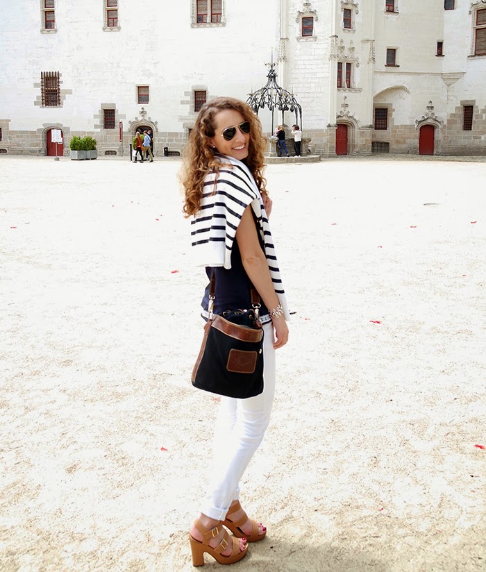 Good Morning!This long weekend we have been vissiting some friends in Nantes, a charming and beautiful city where every corner has something worth it to take in picture! In today post I show you the look I wear to discover the city. A comfortable summer look with white and blue as main colors mix with camel and brown touches. We took the pictures in the Castle of the Dukes of Brittany. Have a great week. Thank you for your comments and visits