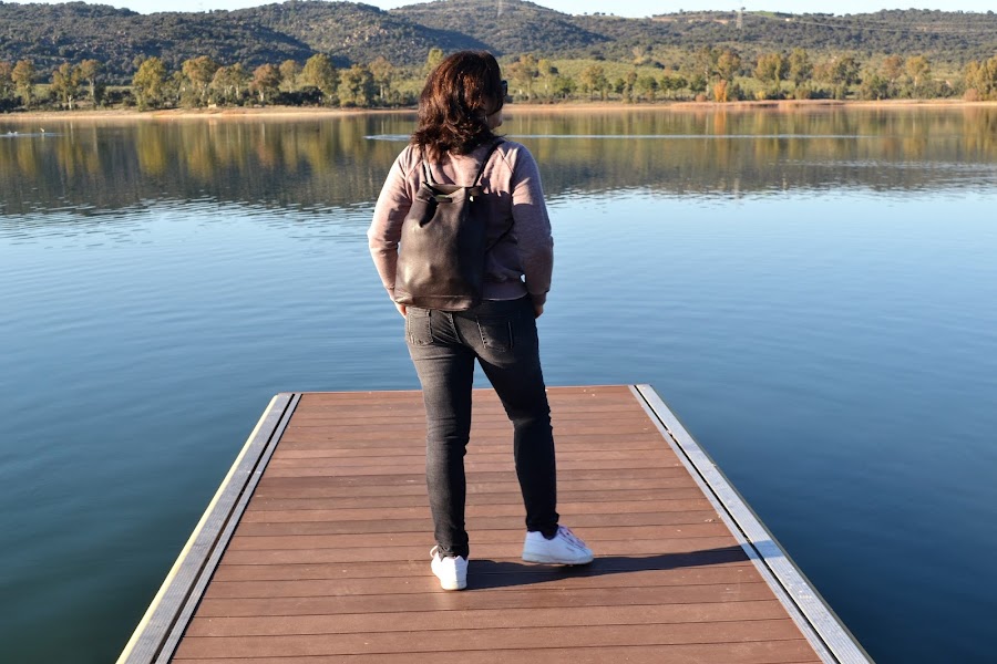 Elegí esta que tiene impreso un bosque y no se me podía ocurrir mejor forma de mostrárosla que en contacto con la naturaleza.