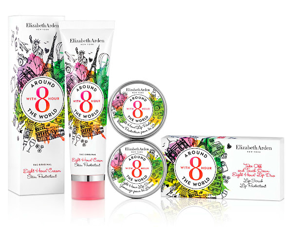 Around the World Eight Hour de Elizabeth Arden, es una línea diseñada especialmente para viajar. Este lote consta de la crema para todo Skin Protectant, una crema multiusos para llevar a todas partes y dos latas para el cuidado de los labios, una es Lip Protectant, un bálsamo para labios y Lip Scrub es un exfoliante para los mismos. La crema cuesta 35 y las de los labios 25 las dos latas.