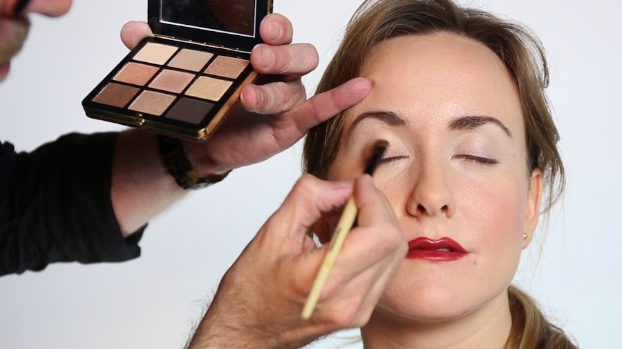 Colorido cálido sobre el rostro, dando intensidad con un color de labios potente y llamativo.