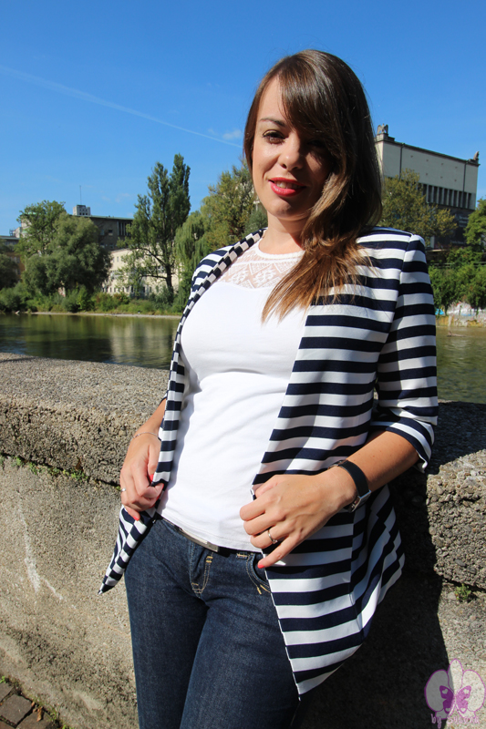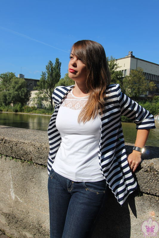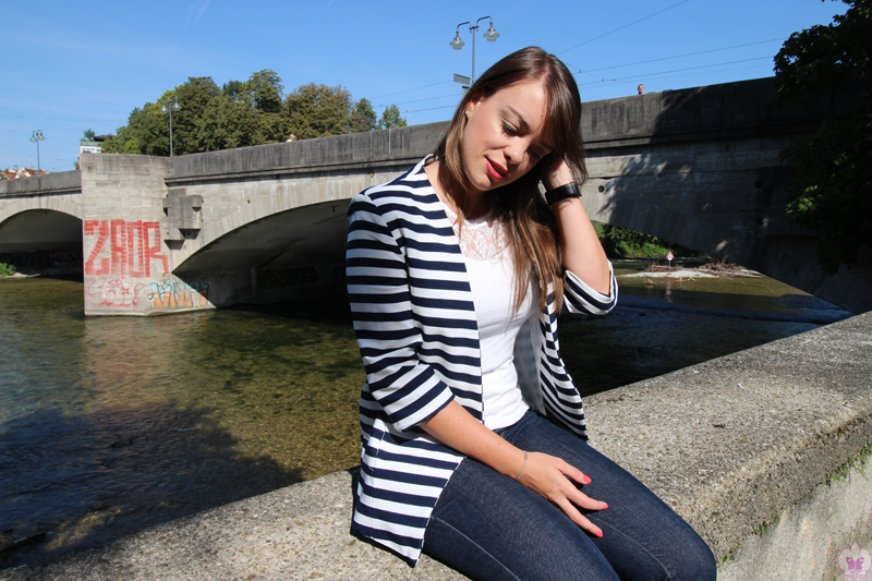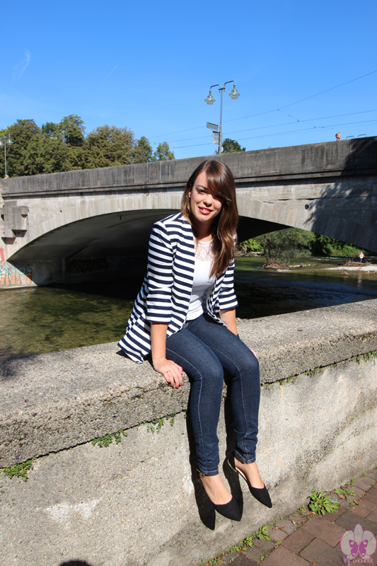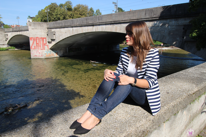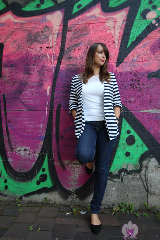 Llevaba bastante tiempo detrás de esta americana de rayas en azul marino y blanco, porque me encanta el rollo navy y porque la veía arreglada pero informal y genial para días de entre tiempo.