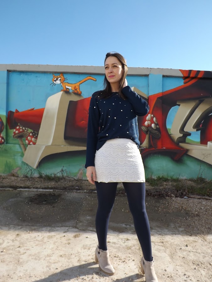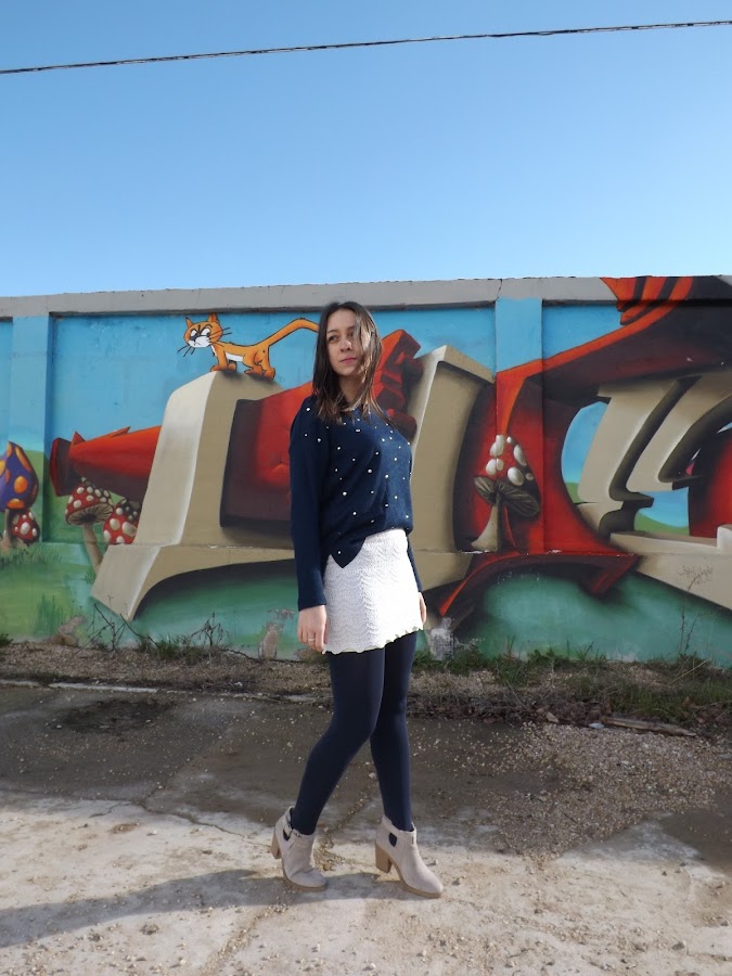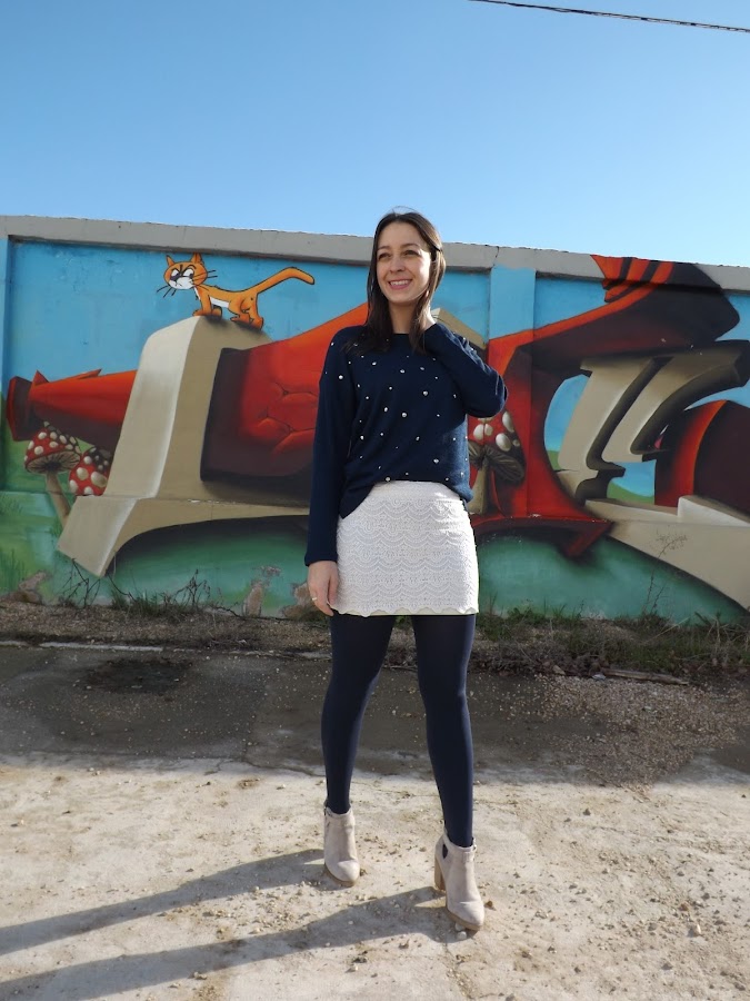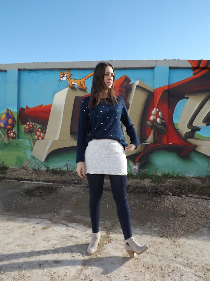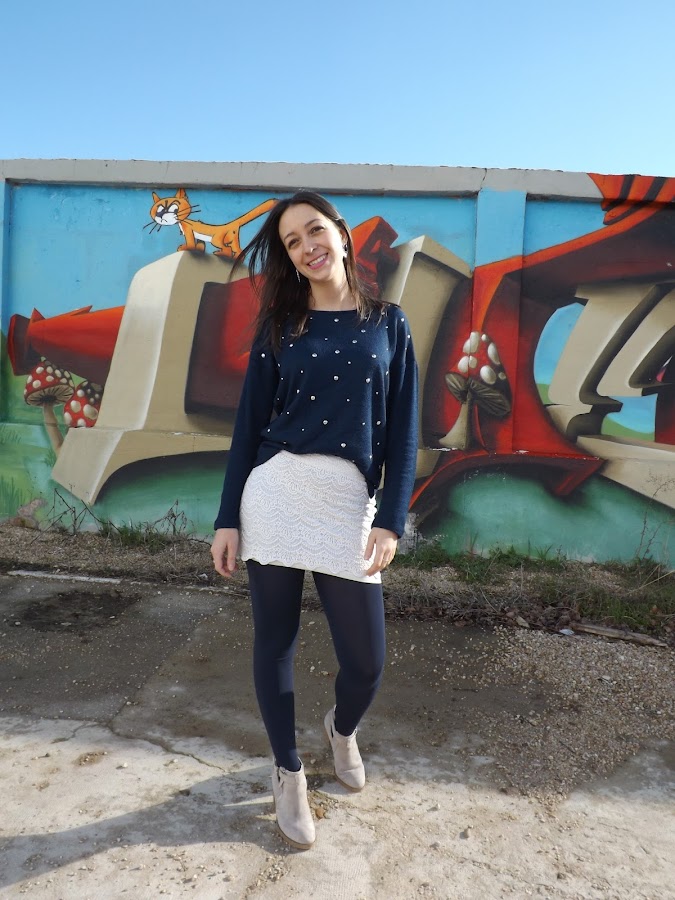 Hace unos días os enseñaba una selección de prendas de Springfield y aquí está una de mis compras: este jersey azul con tachuelas plateadas en la parte delantera. Soy una amante del azul en todas sus tonalidades así que cuando lo ví no me lo pensé dos veces.