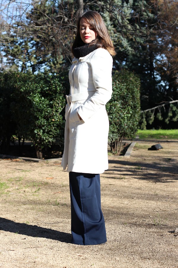 El pasado domingo, para la comida familiar de Navidad, estrené mis nuevos pantalones de vestir de pernera ancha en azul marino de SheIn y con él cree este navy outfit que si no es por el abrigo y la bufanda que me puse encima, parece un outfit muy primaveral, o eso me da la sensación a mi.