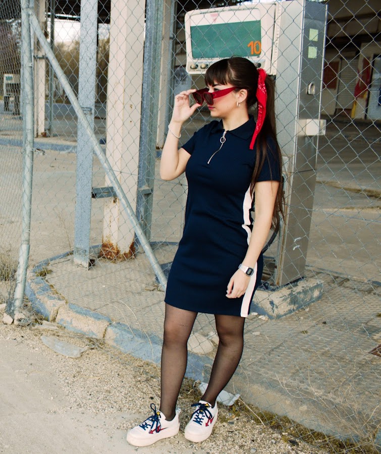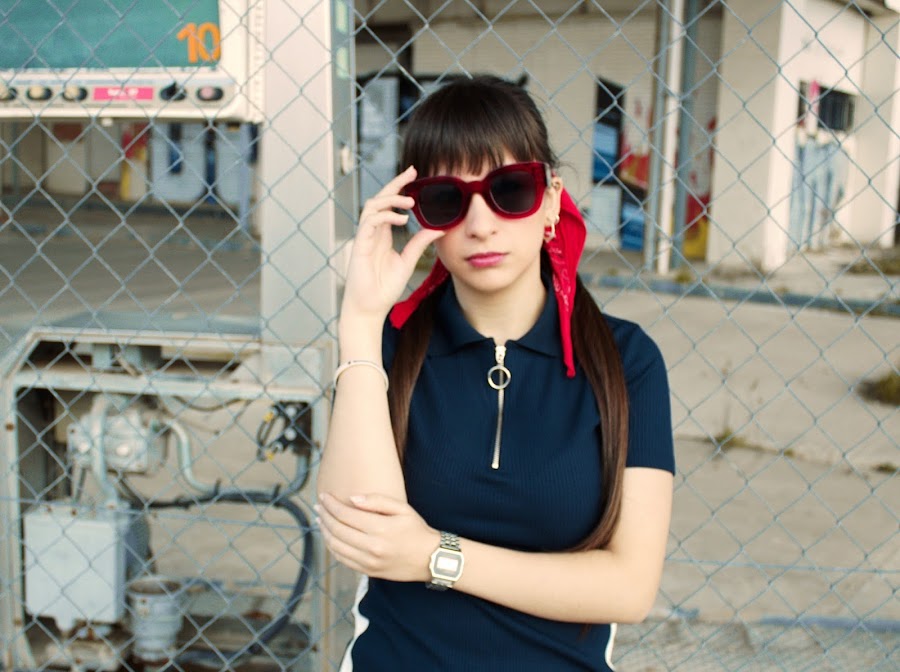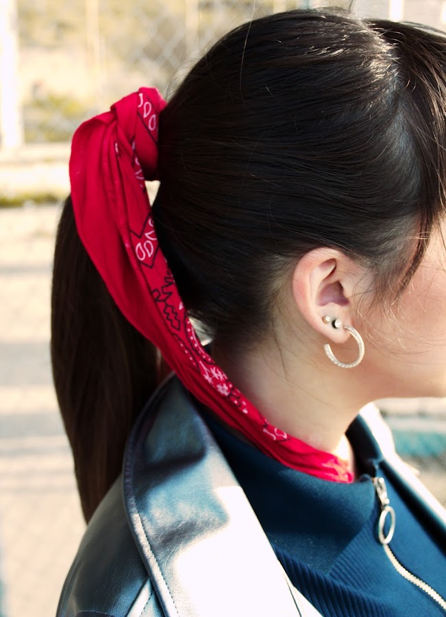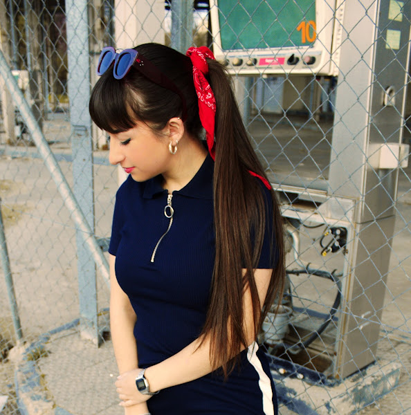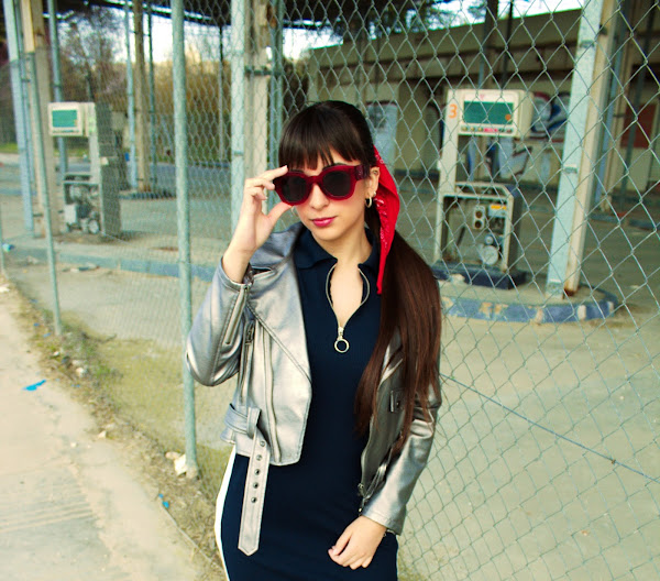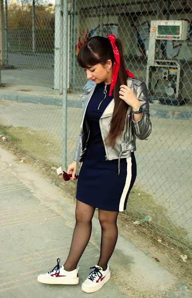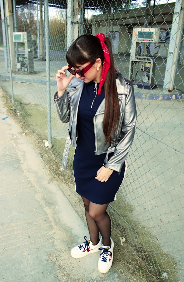 Dress: Bershka // Biker: Zaful // Sunglasses: Rosegal // Shoes: Zara // Bandana: Vintage // Earrings: Primark // Watch: Casio