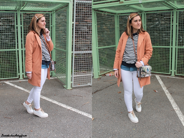 Dos colores que casan a la perfección y que plasmé en el outfit de hoy compuesto por abrigo de paño en camel, sudadera navy con camisa denim debajo, jeans blanco a juego con las sneakers. El toque chic también lo aporta la pinza de perlas que me recuerda a la infancia cuando nuestras madres nos ponían pinzas para quitar el pelo de la cara a lo niñas buenas :) :)