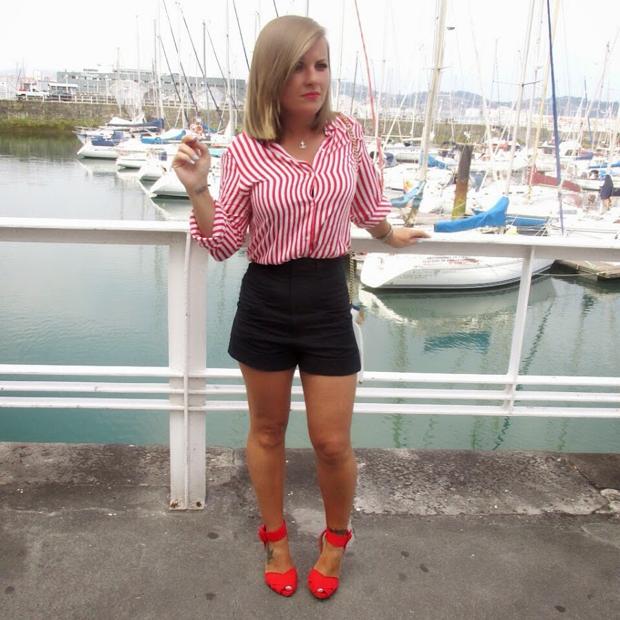 Para el día escogí un look en tonos marineros y rayas, que mejor que eso, ¿verdad?.