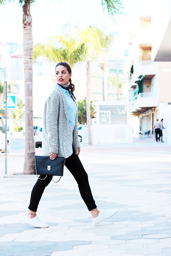 Ahora sí os explico el outfit de esta entrada. A mi me encanta ir cómoda a todos sitios asique usé unos pantalones negros elásticos de Pull and Bear, una camisa azul de rayas de Stradivarius, un pañuelo que me regaló una persona especial, un cárdigan gris que me encanta y mis zapatillas blancas favoritas de Pull and Bear. ¿Os gusta? Feliz semana!