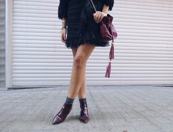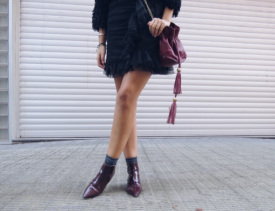 Ademas combine mis calcetines brillo con los botines de charol cool burgundy para dar un toque de color y luz.