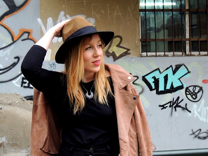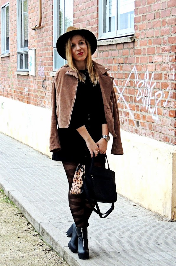 Seguimos con looks para los días nublados, aunque he tenido que hacer milagros para poder enseñaros estas fotos ya que habían quedado muy oscuras y desenfocadas, creo que el look puede ser inspirador y no quería dejar de enseñároslo. Básicos negros acompañados con mi cazadora maravillosa y el sombrero bicolor que taaantas posibilidades tiene y que es la guinda absoluta de un look muy yo, como suelo decir :) Estrenaba los botines perfectos, cañeros y cómodos desde la mañana a la noche. Espero os guste y perdonéis la baja calidad de las fotos. Un beso y feliz semana! Yo estoy por la capi pasando mis últimos días de vacaciones y que podéis seguir todas las aventuras por mi instagram (@caoticaniita)