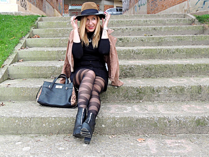 Another look for cloudy days, I had to use magic effects with these pics in order to show you this outfit because, although, these pics were too dark and unfocused, I think they can inspire you. Black "must haves" with my loved perfect jacket and my bicolor hat, that is the perfect end to this autumn look. I wore by first time my justfab booties, they are, perfect, comfortable and cool from morning to the night. I wish you like this post. See you!! :).