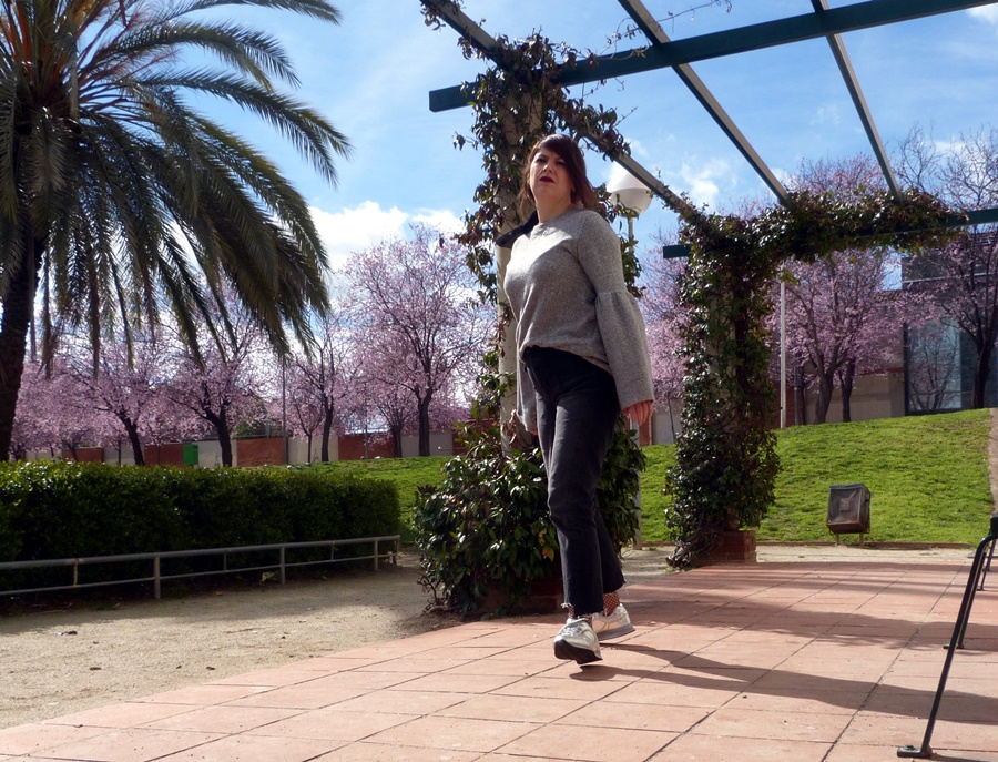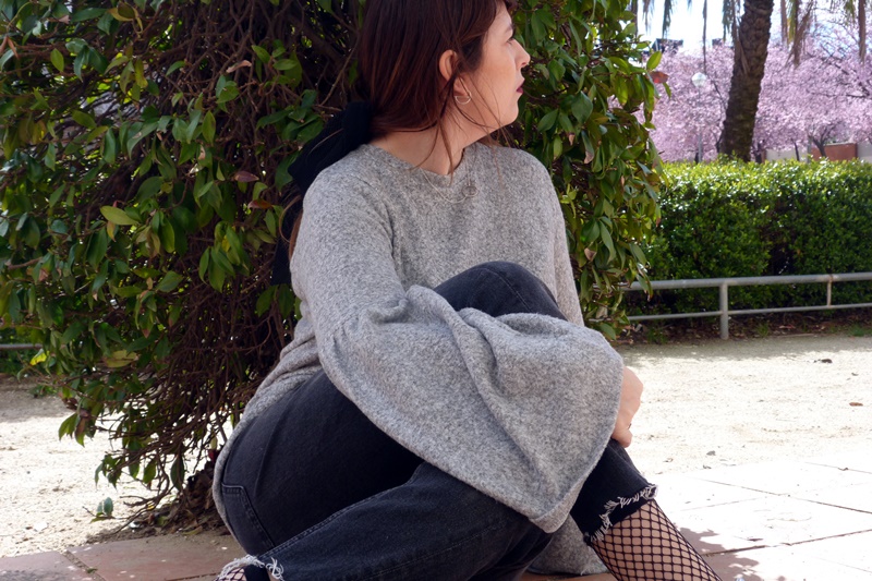¿Que tál el día? damos paso al esperado y bendito viernes, que bonito día de la semana, a las puertas del fin de semana, ¿planes para éste finde? yo sobre la marcha, últimamente vivo el momento sin planear demasiado y lo disfruto mucho más. Me encanta que se acerque la primavera, dar un paseo y que el sol me toque en la cara, prescindir a ratos de abrigos y chaquetas y ver como los árboles empiezan a dar sus flores, como en las fotos que os traigo, un día soleado precioso pero con el fastidioso viento de por medio, pude prescindir de abrigo y sólo lo use a modo de bodegón para las fotos, al final no me hizo falta ponérmelo, un look en gris y negro con varios detalles, el binomio perfecto que últimamente uso muchísimo, un jersey de nueva temporada con las mangas acampanadas y en un tejido súper suave, todo ésto podéis ver en mi look de hoy, espero que os guste :)
