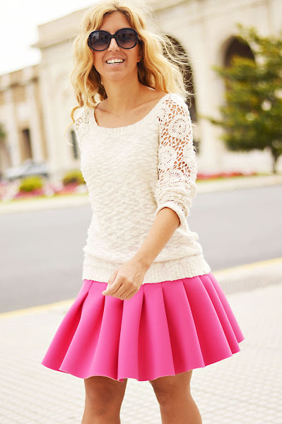 Esta falda me encanta por su color y también por su forma. Es el ejemplo perfecto de una prenda sexy pero elegante. Para equilibrar un poco el outfit y que no resultara demasiado, lo he combinado con una camiseta de algodón blanco y accesorios sencillos, eso sí, con taconazo. Por cierto, que en unos días quiero hacer una entrada comentándoos algunos trucos que utilizo para andar con tacones altos, ...